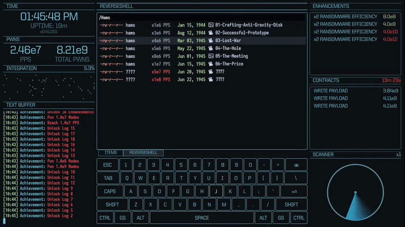 Type commands and deploy hacking tools to pwn nodes. Every key you press chips away at the elite's firewall.